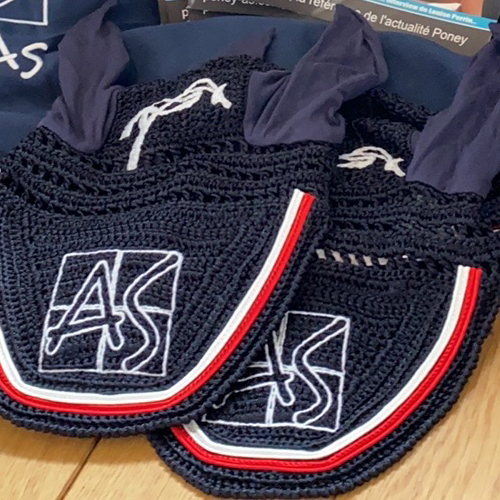 Bonnet crocheté à la main et doté de deux oreilles en lycra très extensibles pour convenir au plus grand nombre de chevaux. Un galon point sellier dessine le chanfrein et la broderie du petit cheval de la marque fini avec élégance le produit. Il peut être utilisé pour atténuer les bruits qui peuvent apporter du stress au cheval ou tout simplement pour ajouter une touche esthétique à son look!
